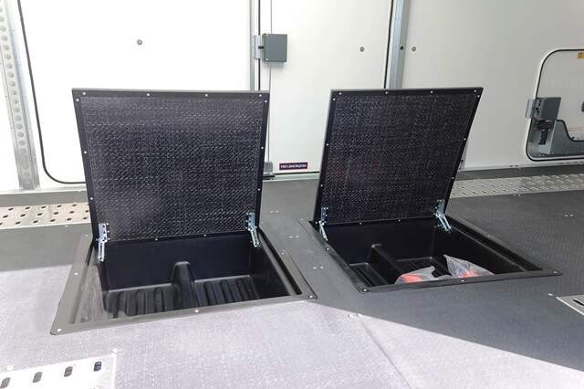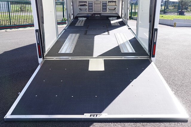 De série : Basculement électro-hydraulique, hayon arrière électrique, plancher en matériau composite, nouveau châssis allégé et plus résistant, jantes en Alliage (y compris roue de secours), éclairage LED intérieur, éclairage LED extérieur, feux de recul latéraux (LED), feux de chargement arrière (LED), treuil électrique, 4x sangles "Tour de Roue", 2x cales de roues ajustables, 2x coffres de rangement dans le plancher........