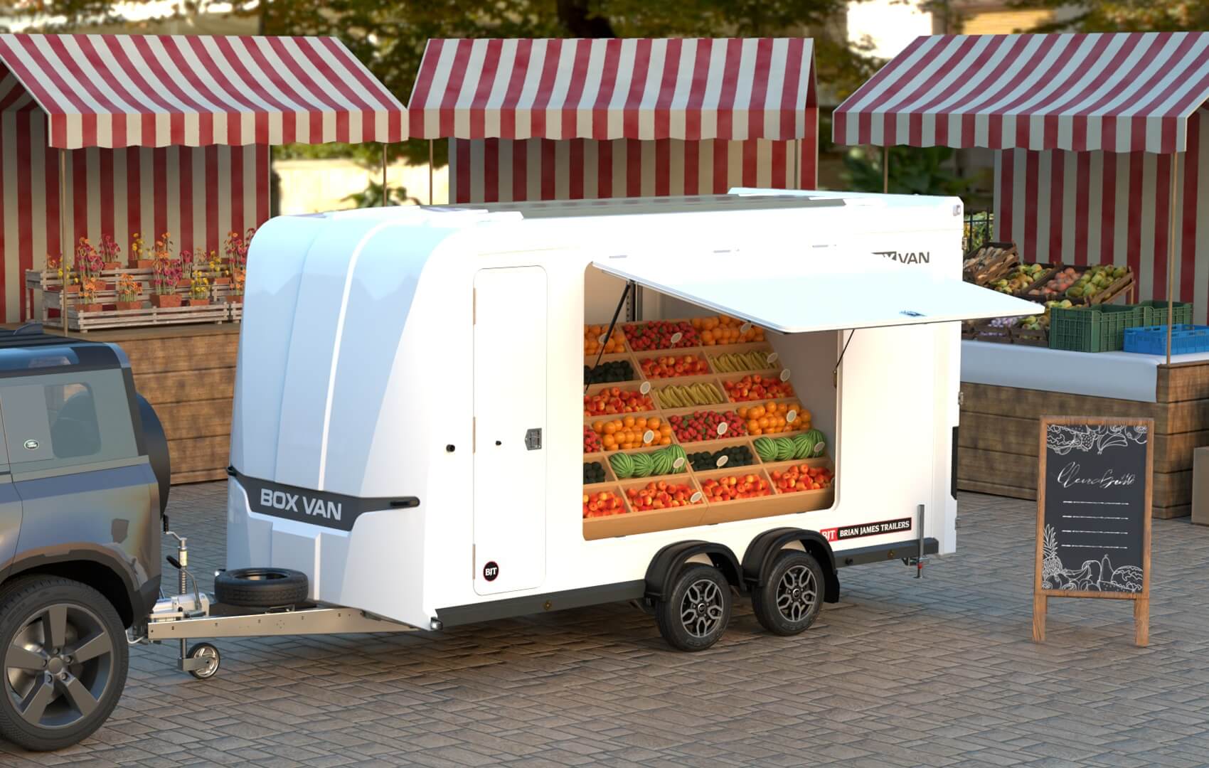 BRIAN JAMES TRAILERS - Remorque Fourgon BOX VAN - 3.50 m x 1.60 m - Fixe - 2.700 kg - 2 essieux - couleur ext. Noire - NOUVEAUTÉ !