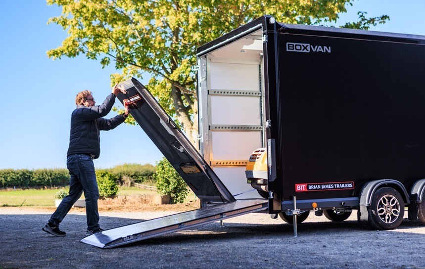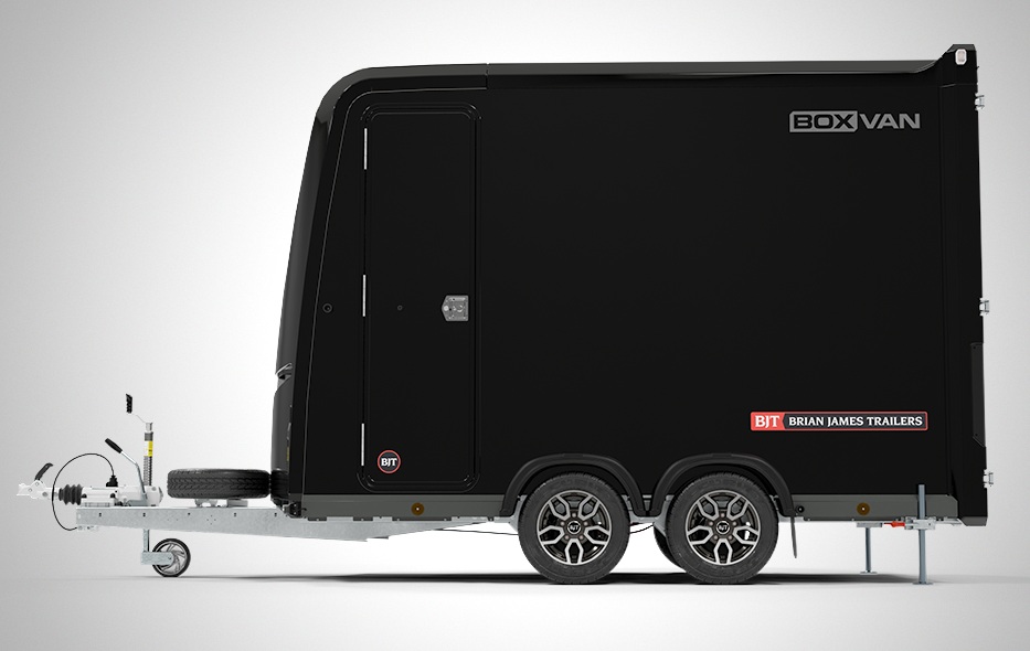 BRIAN JAMES TRAILERS - Remorque Fourgon BOX VAN - 3.50 m x 1.80 m - Fixe - 2.700 kg - 2 essieux - couleur ext. Noire - NOUVEAUTÉ !