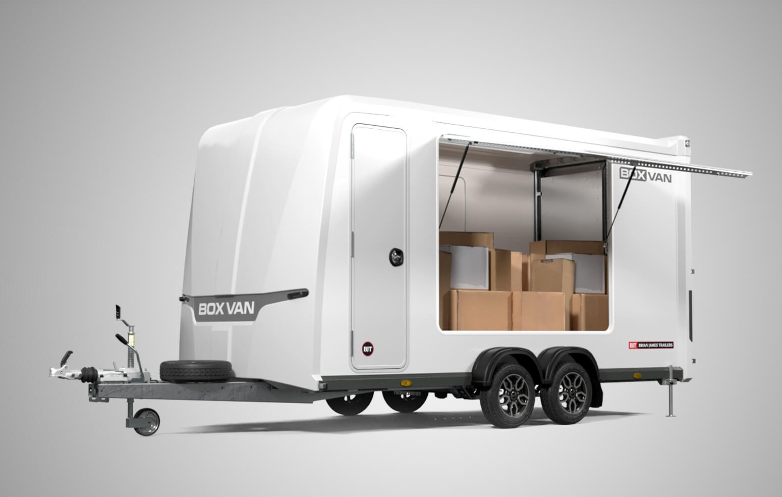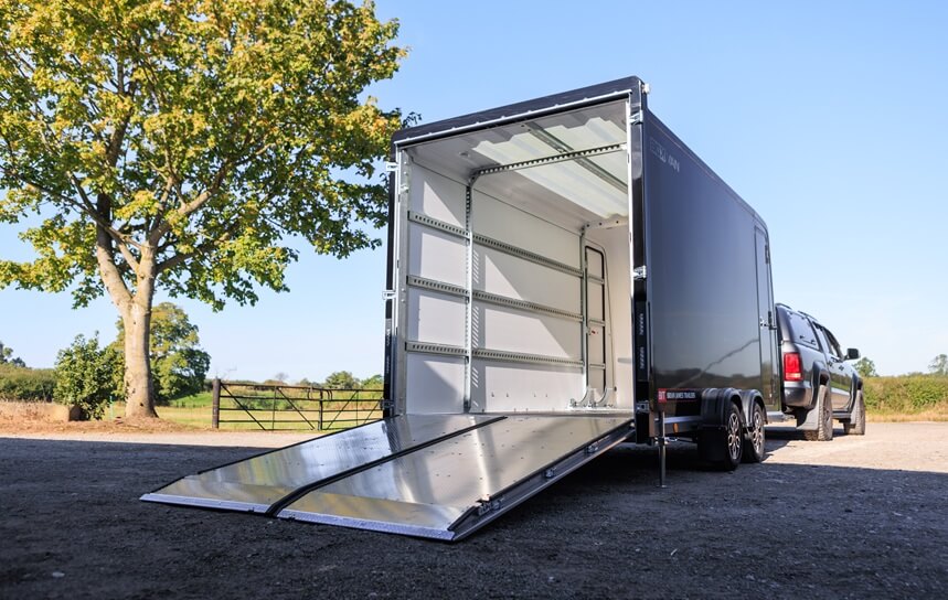 BRIAN JAMES TRAILERS - Remorque Fourgon BOX VAN - 4.50 m x 1.95 m - Fixe - 3.500 kg - 2 essieux - couleur ext. Noire - NOUVEAUTÉ !