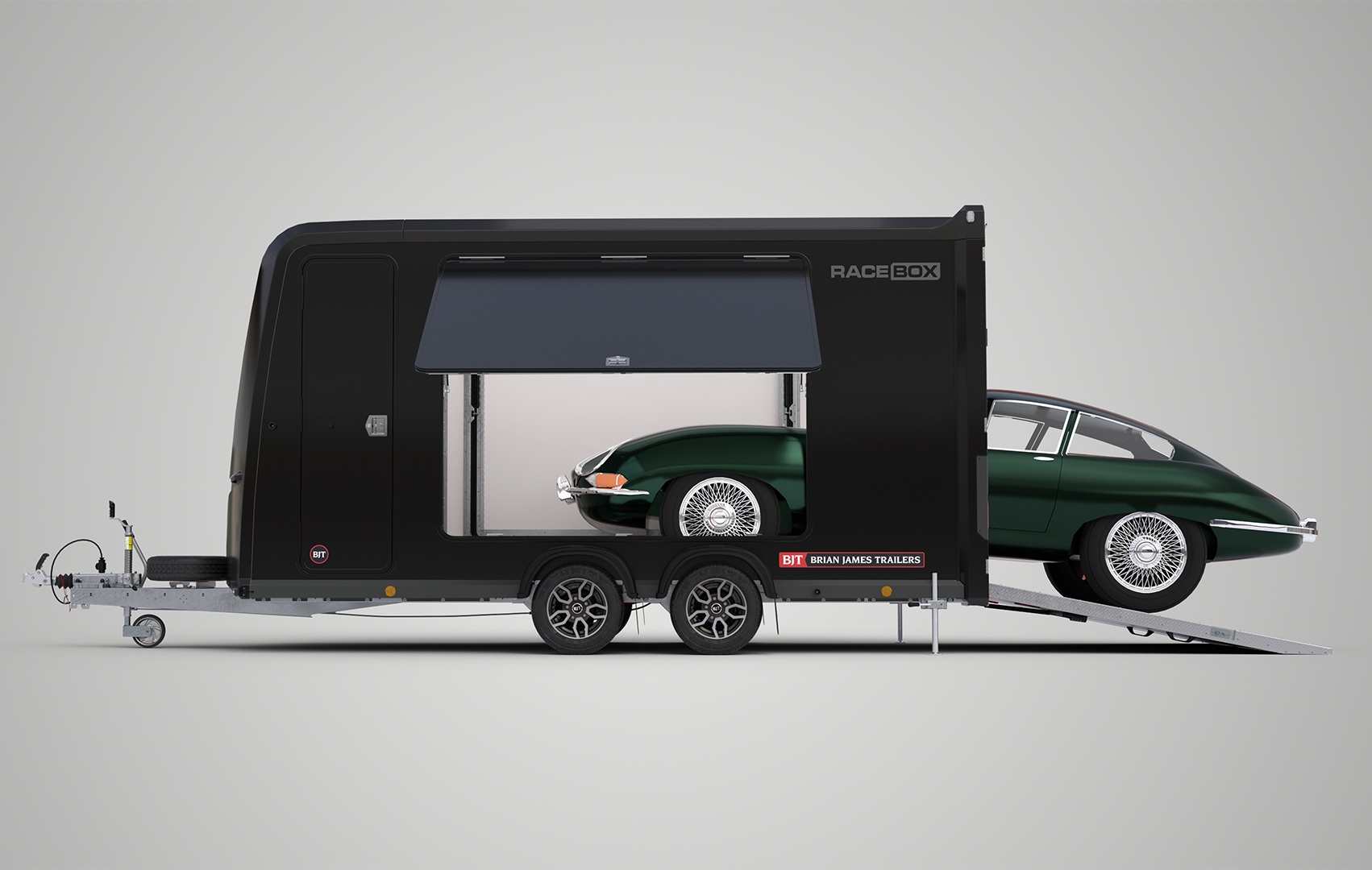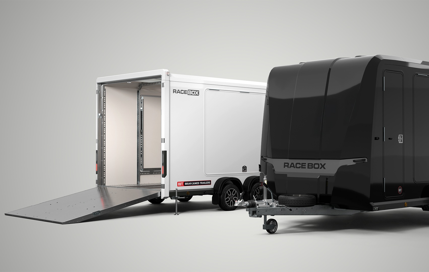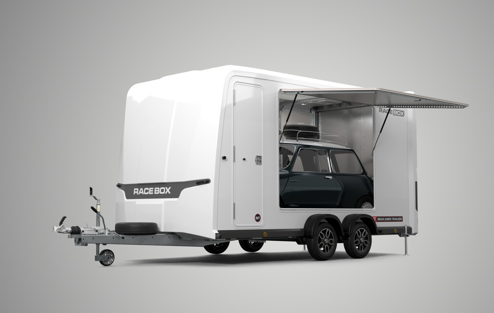Porte-voitures Fermée Compacte - BRIAN JAMES TRAILERS - Race Box - 4.50 m x 1.95 m - Fixe - 3.000 Kg - 2 essieux - NOIRE - NOUVEAUTÉ !